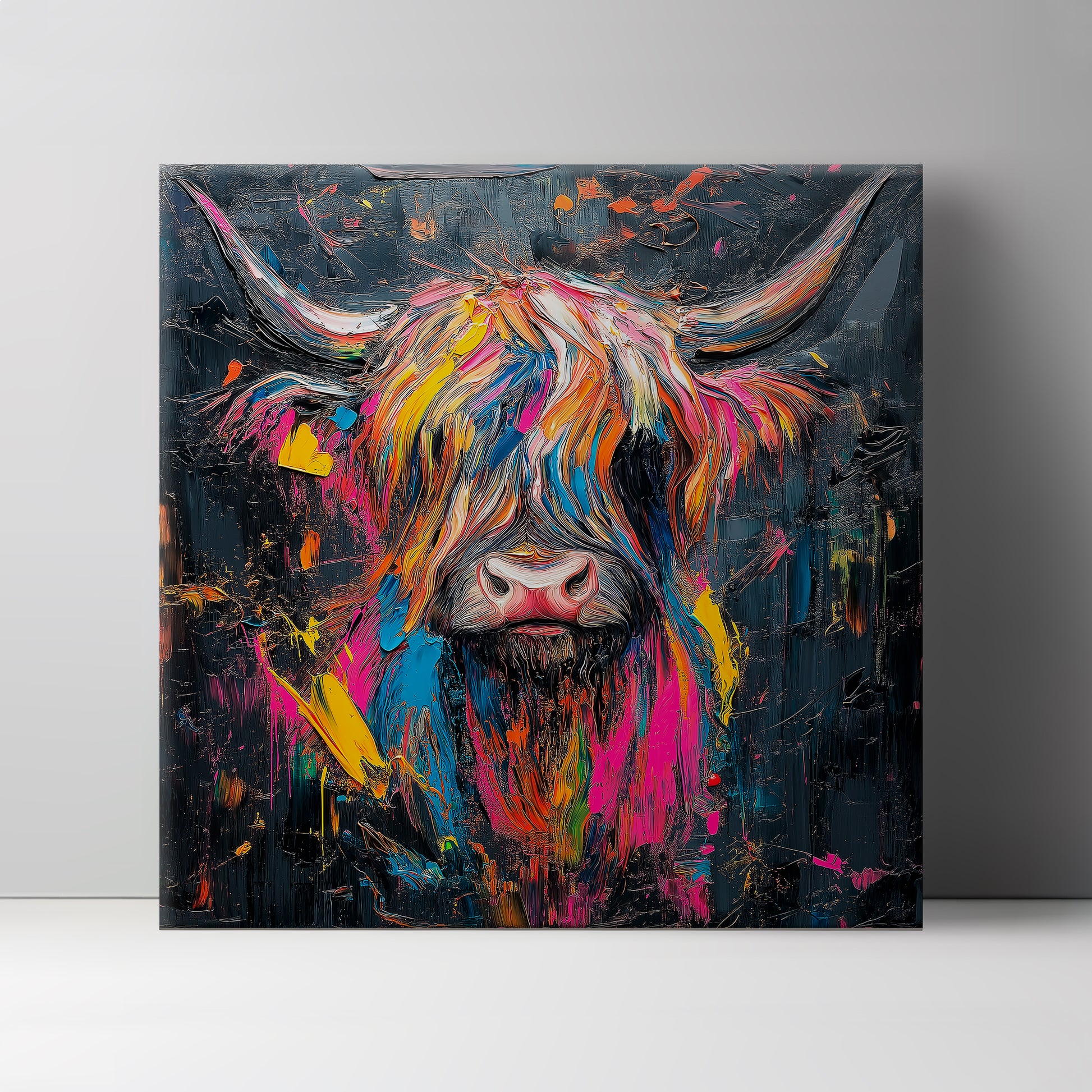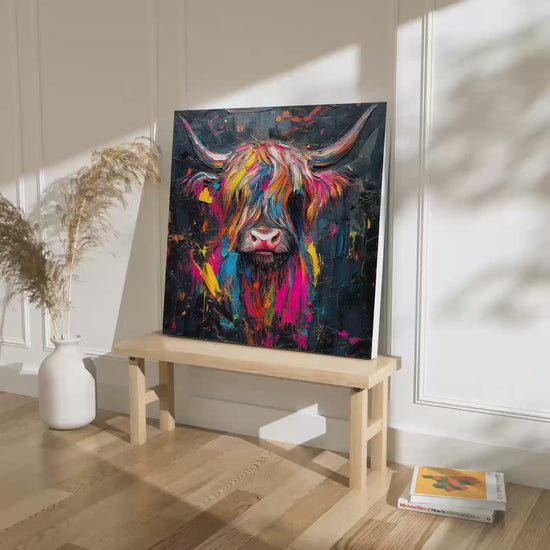 This piece brings to life the timeless grace of the Highland cow, with a touch of my own colourful personality thrown in for good measure - making it the perfect focal point for any room.