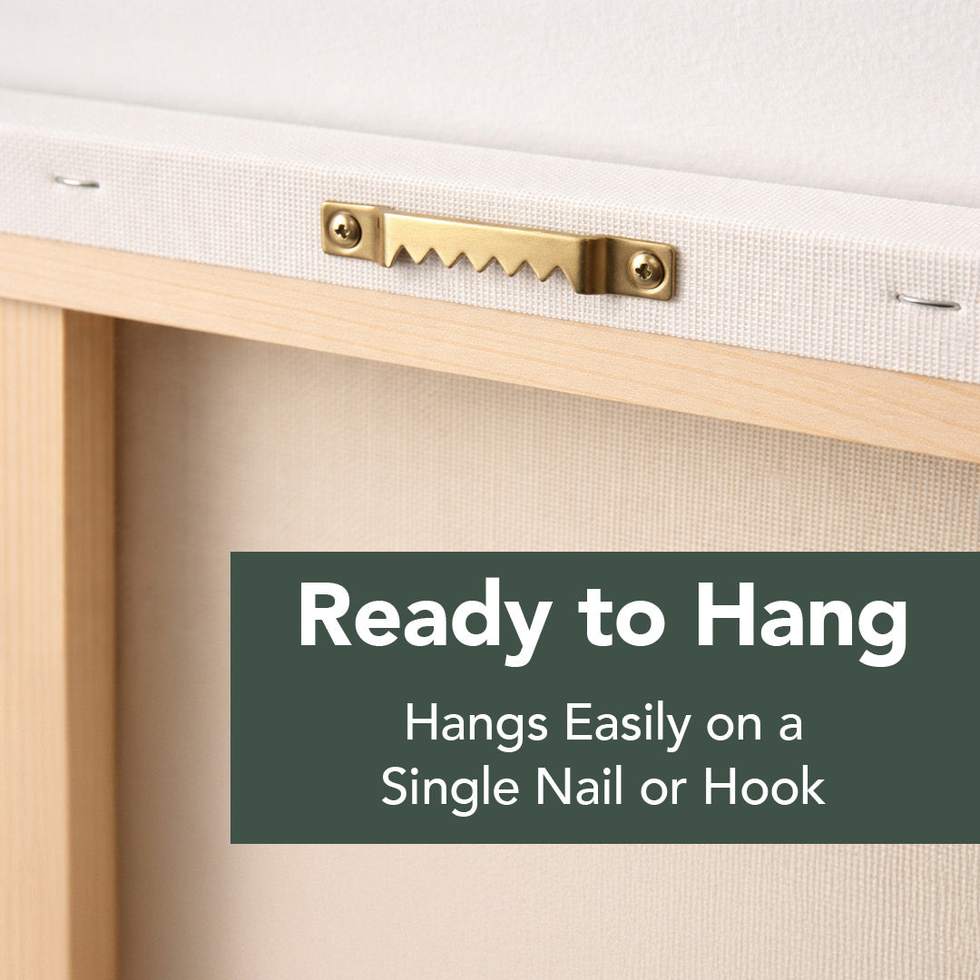 - Arrives stretched and ready to hang
